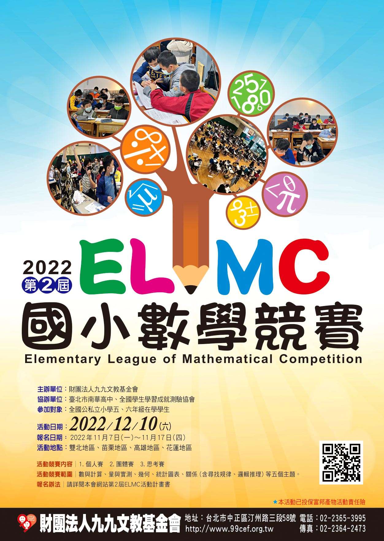 一、ELMC國小數學競賽由臺北市教育局、苗栗縣教育處任 指導單位,乃公益性質之數學競賽,由學生組隊參加、僅 需繳納保證金,保證金於競賽當日即行退還。