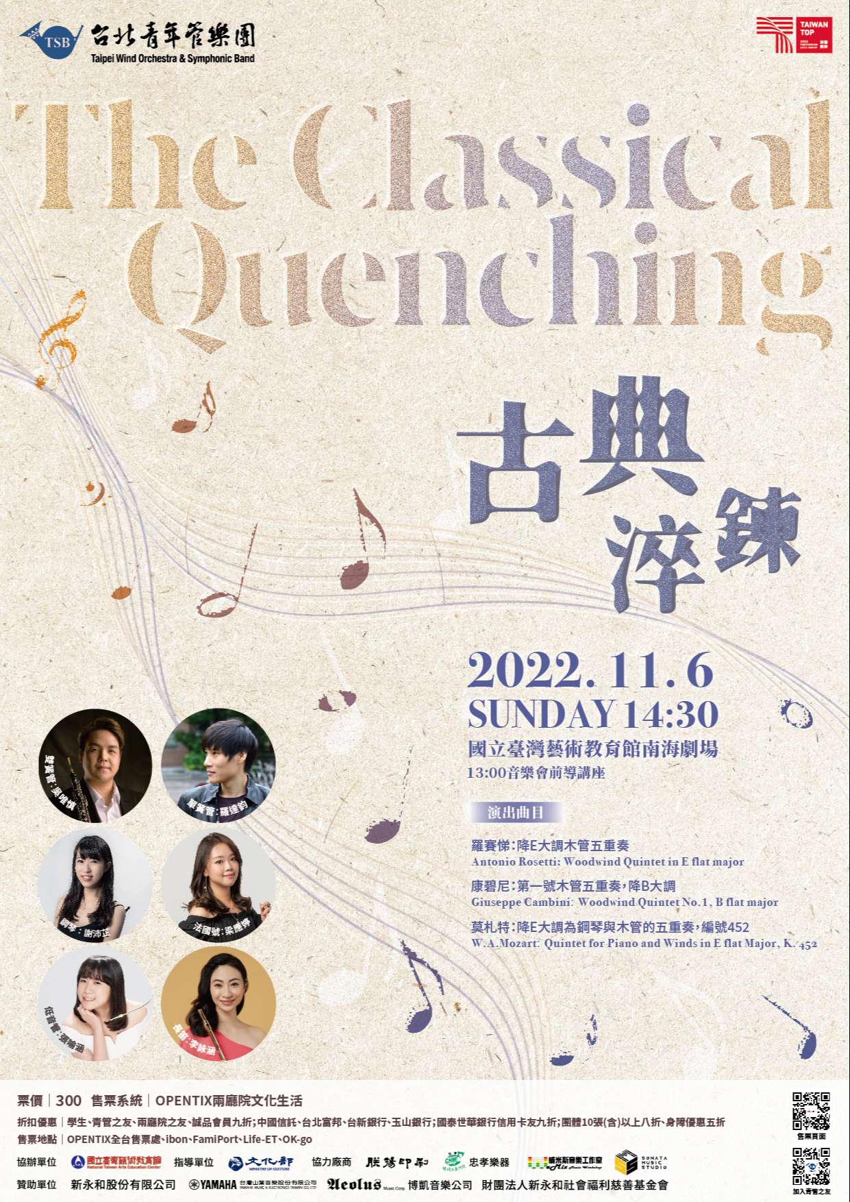 一、為使民眾了解古典時期音樂特色,本團特邀請國內優 秀木管與鋼琴新秀演奏家,精選多首古典時期優美曲目, 包含莫札特管樂與鋼琴五重奏及當代木管五重奏曲目。