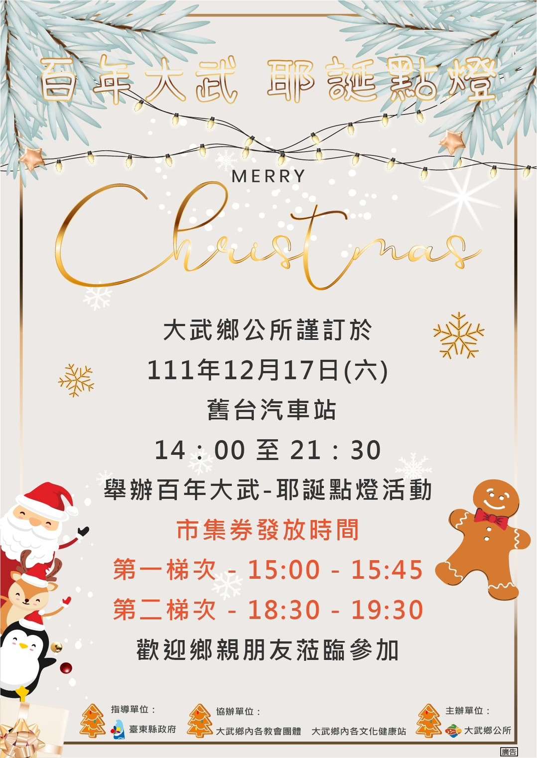 臺東縣大武鄉辦理「111年愛來武遊-四季登豐」百年 大武耶誕點燈活動電子海報1份